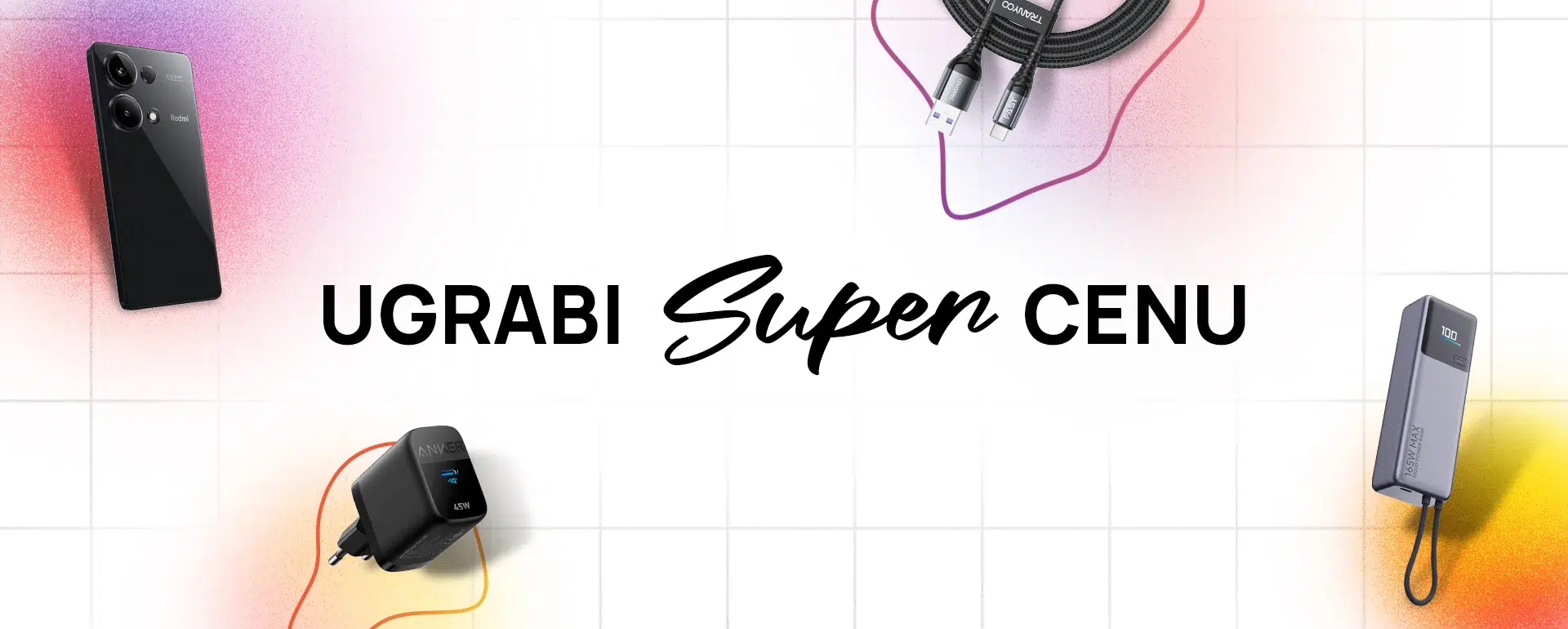 Pogledajte sveVeliki izbor punjača različite snage punjenja, sa ili bez kabla. Pronadji punjač baš za tvoj telefon.