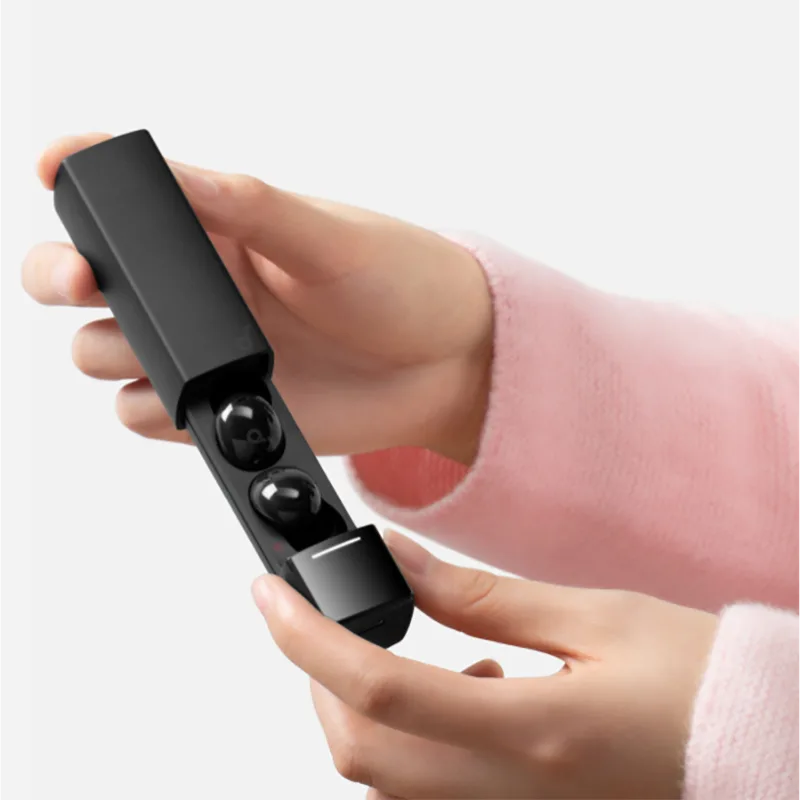 Slušalice su lagane (samo 32 grama) i ergonomski dizajnirane za savršeno pristajanje. Kućište u obliku ruža za usne je kompaktno i stilsko, sa kliznim mehanizmom za jednostavno otvaranje.