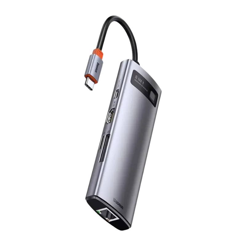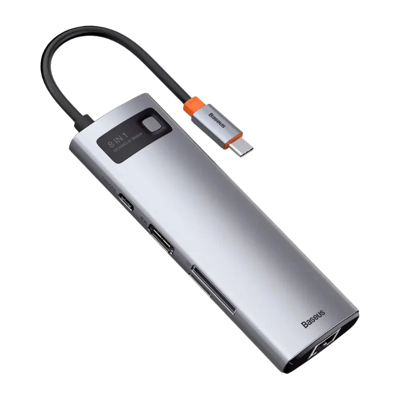 BASEUS Adapter 8 u 1 Metal Gleam Series, Type-C, Sivi