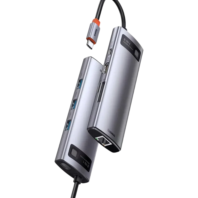 BASEUS Adapter (Hub) 8 u 1 Metal Gleam Series, Type-C, Sivi
