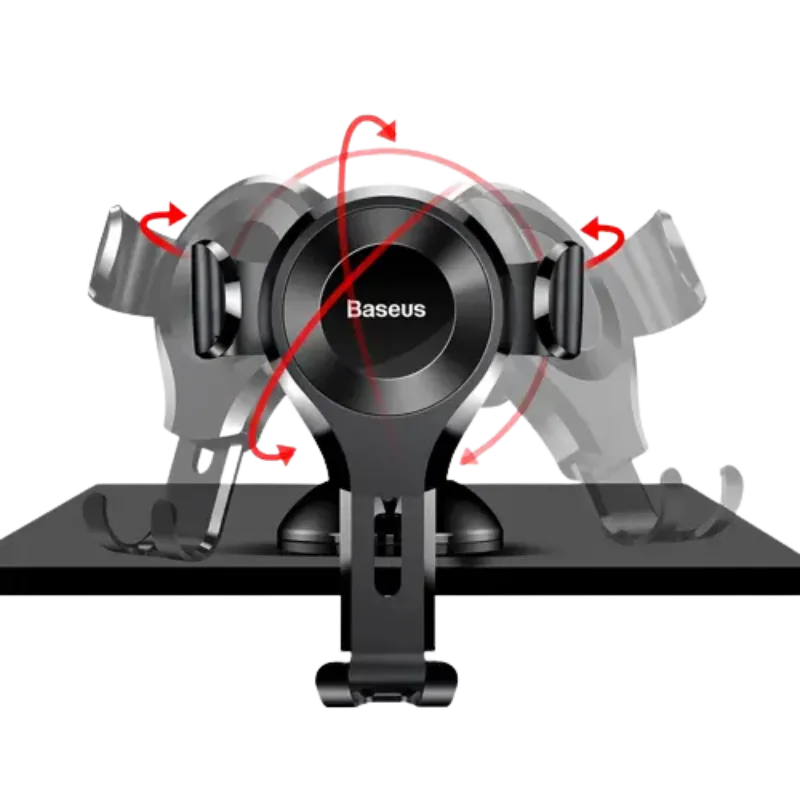 Gravitacioni držač koji se pomoću vakuma lepi na šoferku ili tablu i ima podesiv ugao od 360 stepeni