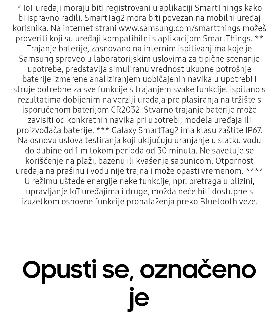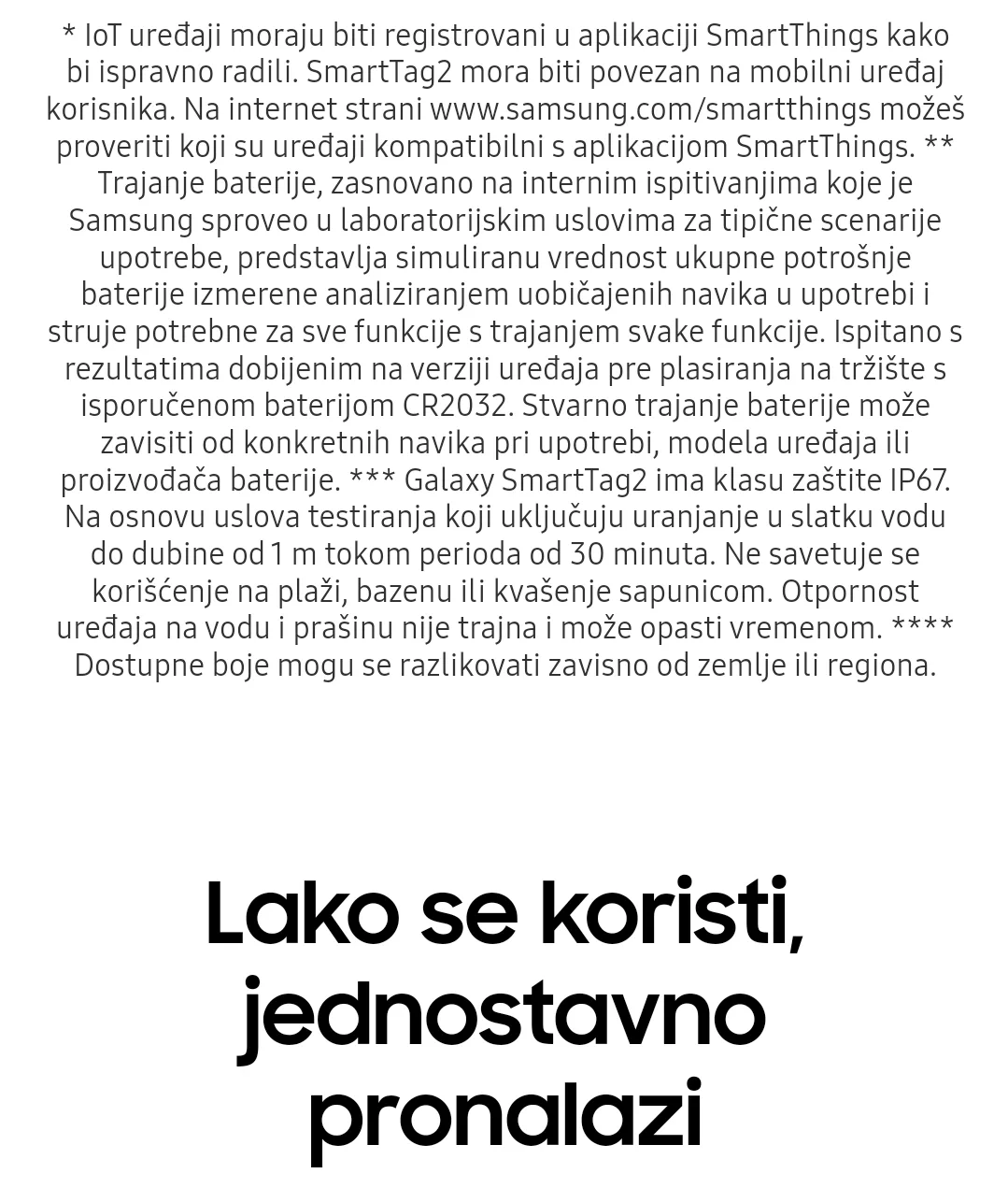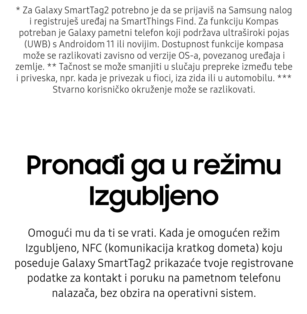 Ovaj pametan uređaj je kompatibilan sa Galaxy uređajima kao što su pametni telefoni i tableti sa Android OS-om 9 (P OS) ili novijim, koji podržavaju UWB za funkcije UWB. To znači da ćete moći da ga lako integrišete sa svojim postojećim Samsung uređajima.