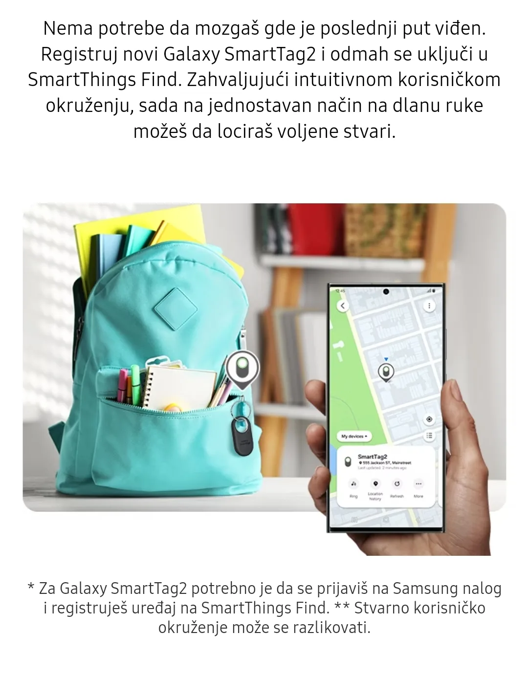 Galaxy SmartTab2 je idealan za praćenje važnih stvari kao što su ključevi od stana ili automobila, kofere i drugi dragoceni predmeti. Nikada više nećete gubiti vreme tražeći ih.