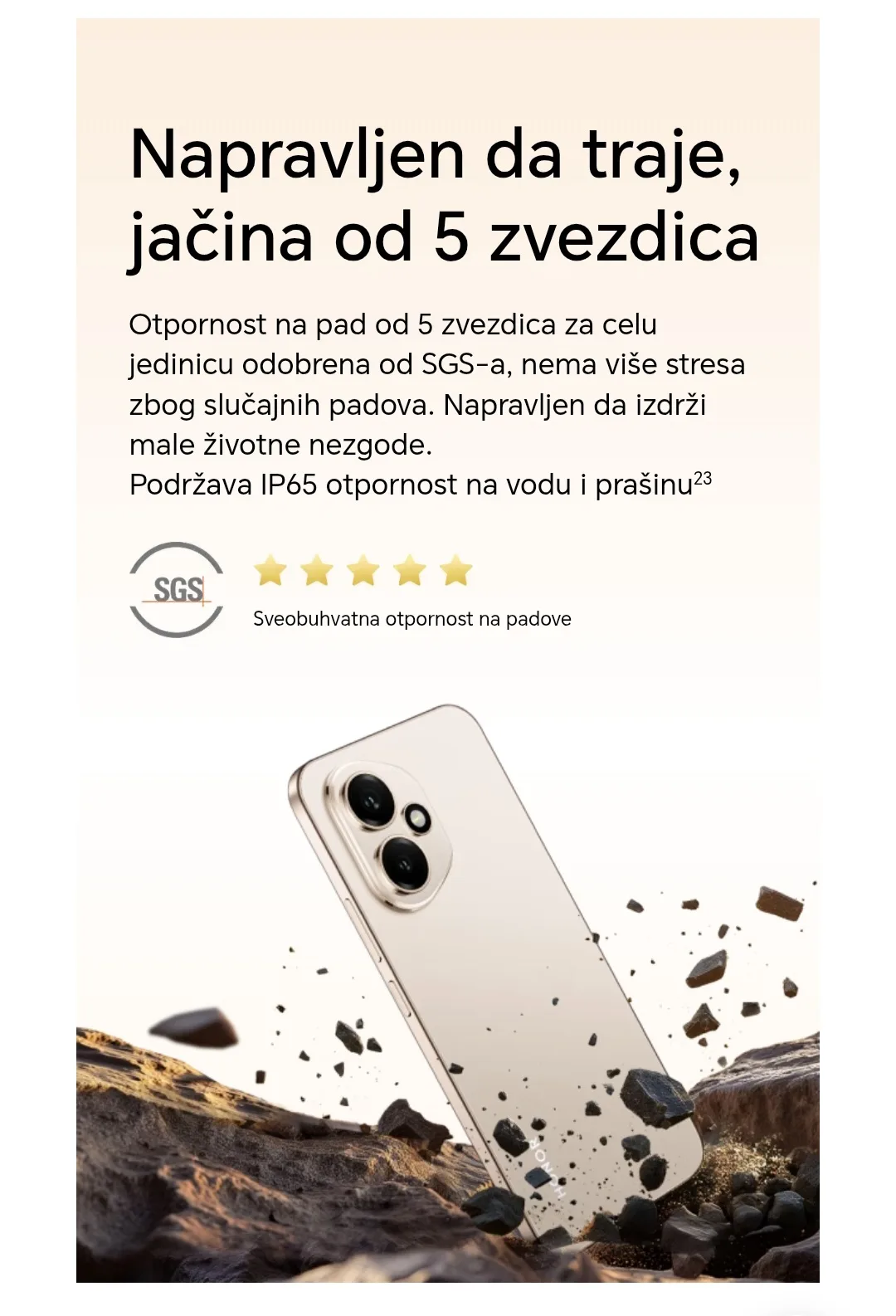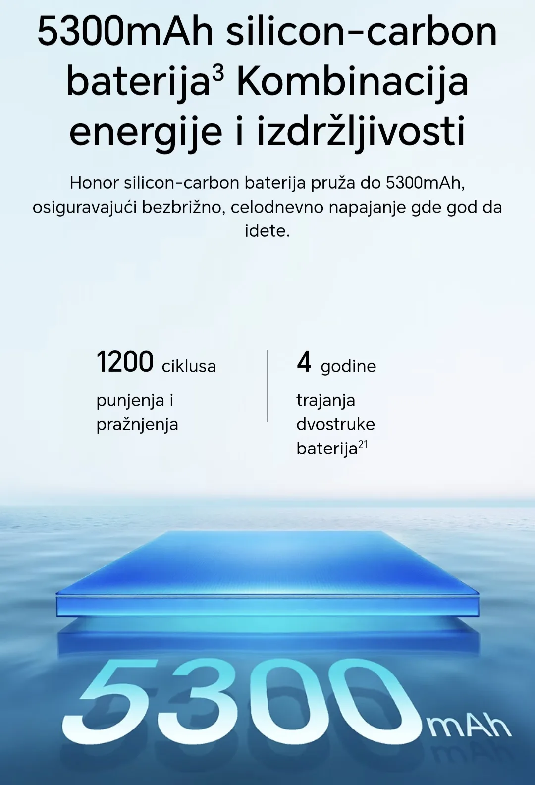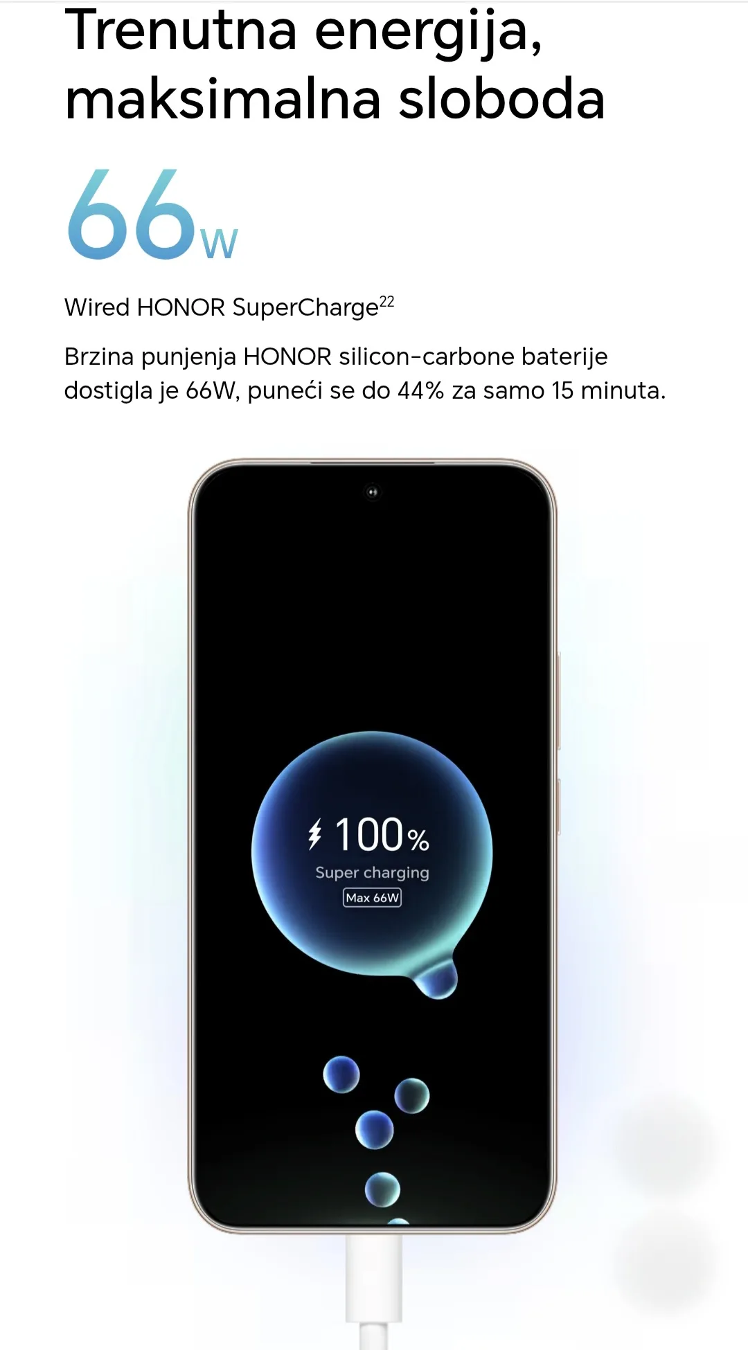 Snažna baterija od 5300 mAh uz brzo punjenje od 66 W obezbeđuje dugotrajan rad telefona i brzo dopunjavanje energije, što vam omogućava više vremena za korišćenje, a manje za čekanje kraj punjača.