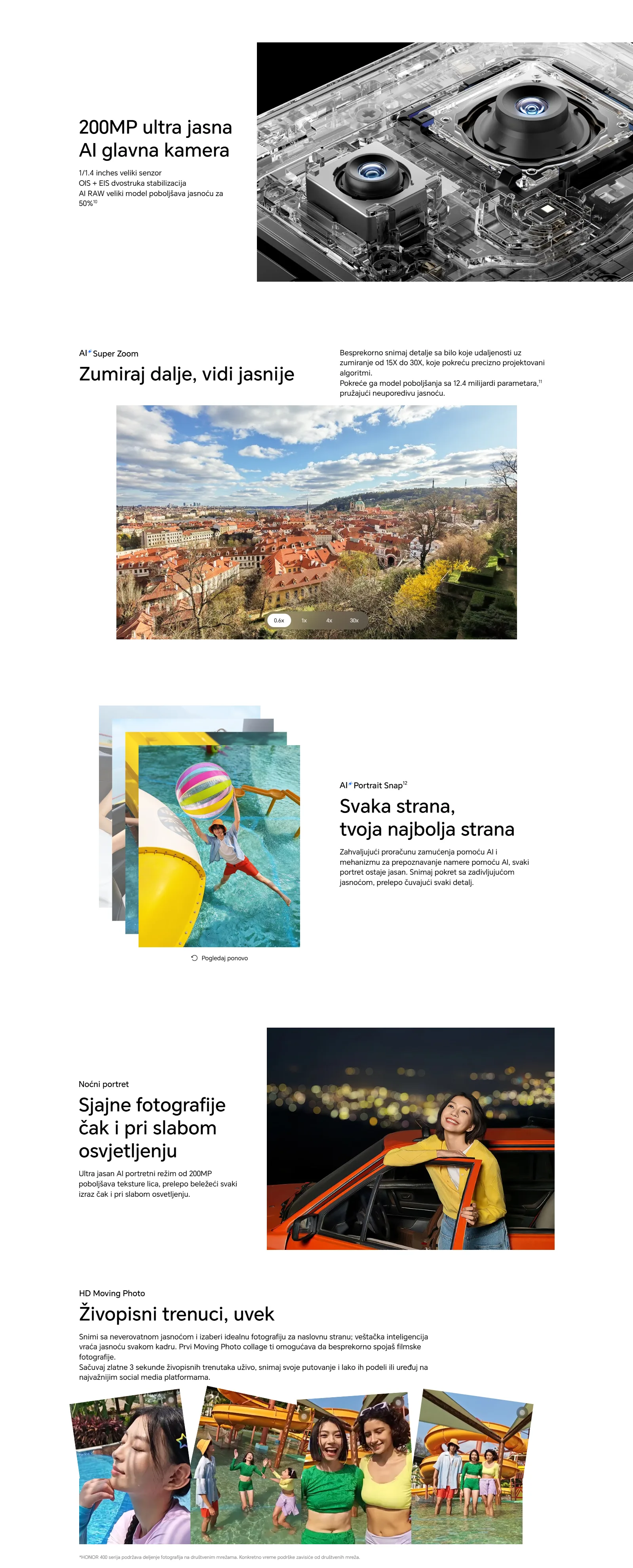 Glavna kamera od 200 MP, uz podršku optičke i elektronske stabilizacije, omogućava snimanje jasnih i stabilnih fotografija i video sadržaja, čak i pri kretanju ili u uslovima slabijeg osvetljenja – idealno za kreiranje kvalitetnog vizuelnog sadržaja.