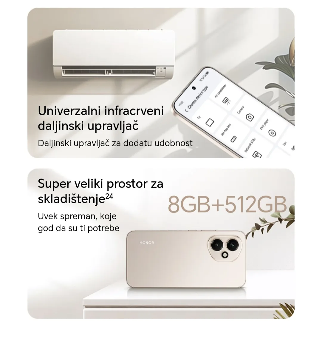 Honor 400 je napredni pametni telefon koji spaja moderan dizajn sa snažnim performansama. Opremljen AMOLED ekranom dijagonale 6.55 inča, Snapdragon 7 Gen 3 procesorom, impresivnom kamerom od 200 MP i baterijom kapaciteta 5300 mAh, ovaj uređaj zadovoljiće potrebe i najzahtevnijih korisnika.
