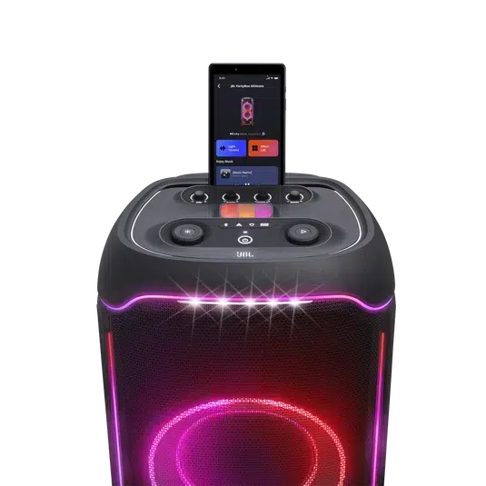 JBL PartyBox Ultimate može pokriti ogroman prostor – govorimo o dva košarkaška terena – uz vrhunski originalni JBL Pro zvuk. Sadrži dva drajvera i zvučnik srednjeg opsega za jači zvuk. Dva visokotonca i par subwoofera znače da će biti više nego dovoljno basa čak i za najposvećenije fanove, dok Dolby Atmos pruža impresivne 3D prostorne efekte. Ovo je vrsta gromoglasnog zvuka koji nećete samo čuti, već ćete i osetiti. Potrebna je pretplata na uslugu visoke definicije kako biste slušali impresivnu muziku u Dolby Atmosu.