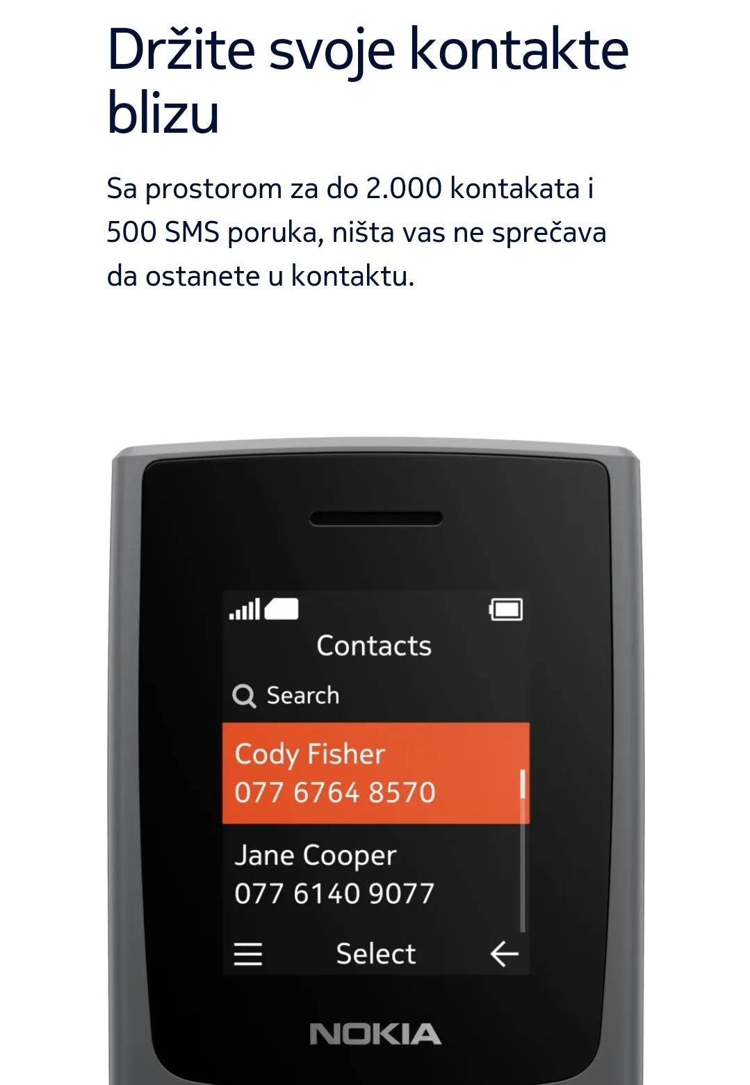 Kada je u pitanju komunikacija, Nokia 105 (2023) ima klasičnu telefonsku tastaturu, koja omogućava brzo kucanje poruka i biranje brojeva. Tastatura svetli u odnosu na prethodni model, tako da nećete imati problema i kada ste u mraku. Možete lako upravljati pozivima, slati SMS poruke i čak slušati FM radio putem ugrađenog FM radija. To znači da ćete uvek biti u toku sa najnovijim vestima ili omiljenom muzikom, bez potrebe za dodatnim uređajem.