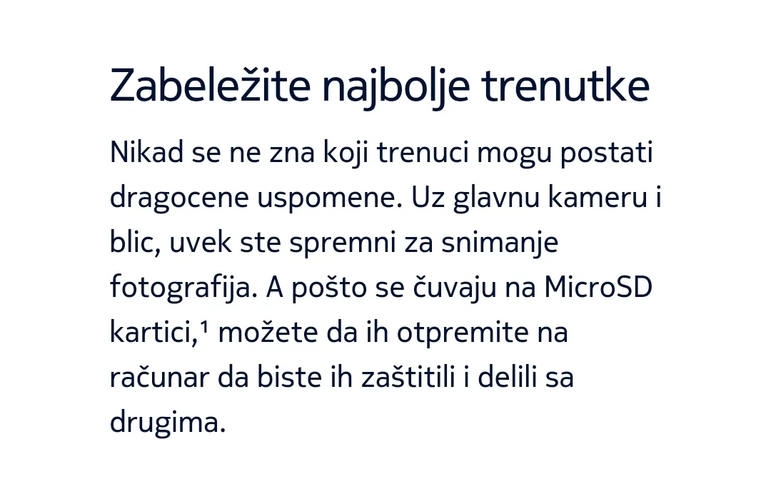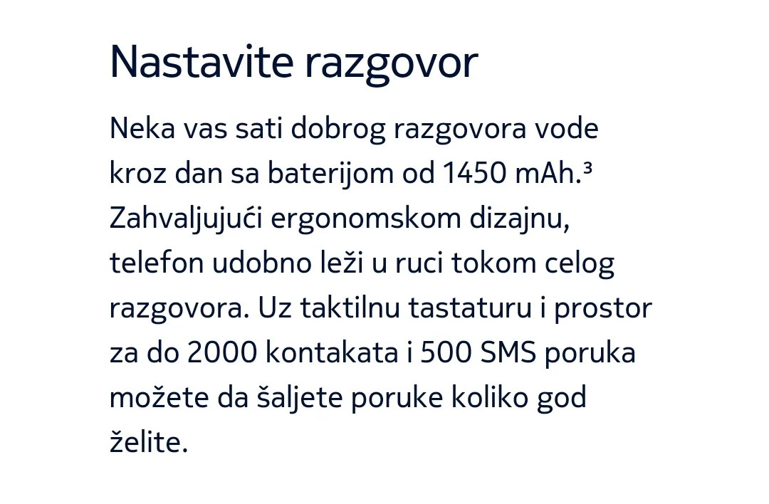 4MB interne memorije (imenik do 2000 kontakata), Mogućnost proširenja memorije sa microSDHC (do 32GB)