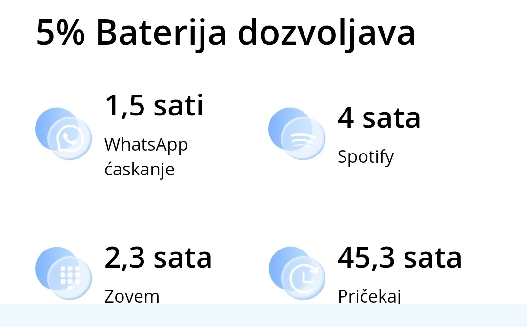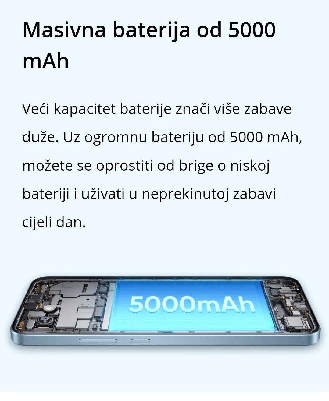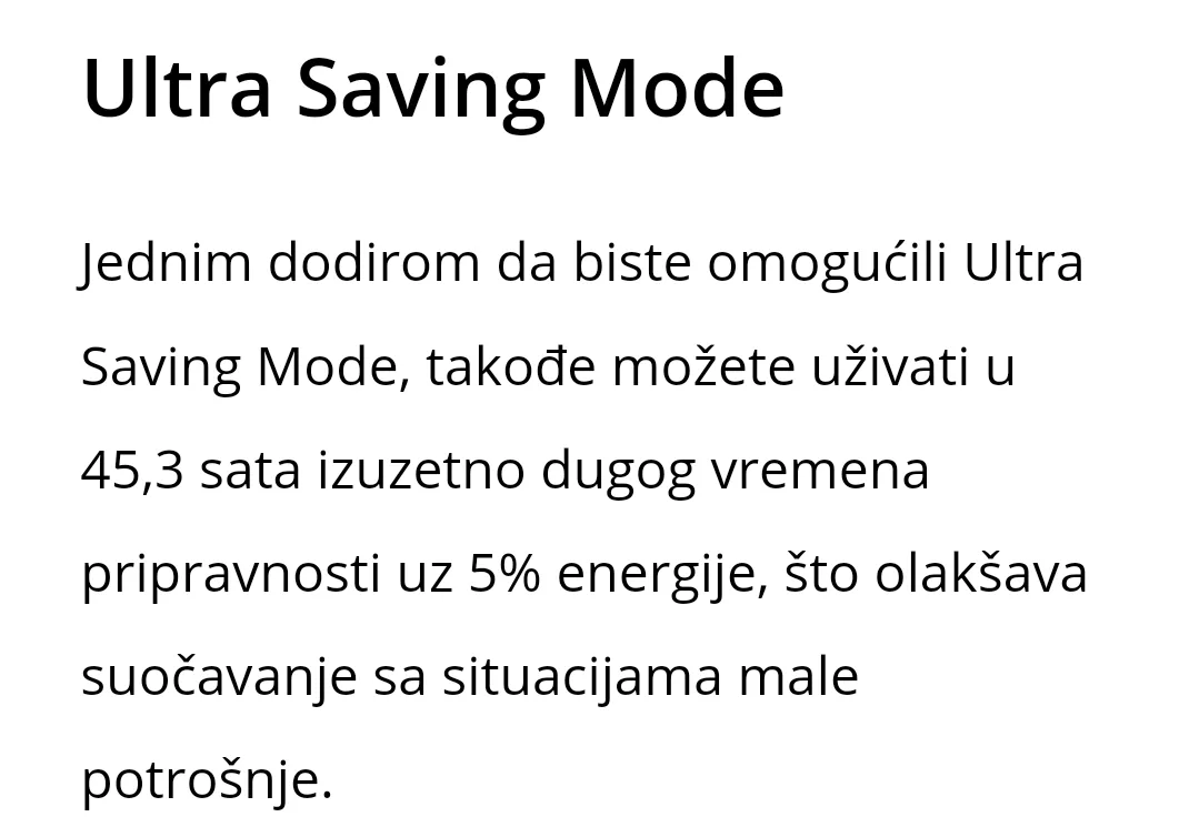 * Trajanje baterije ne zavisi samo od kapaciteta baterije već i od ostatka hardvera odnosno koliko su komponente napredne i samim tim troše manje energije da rade