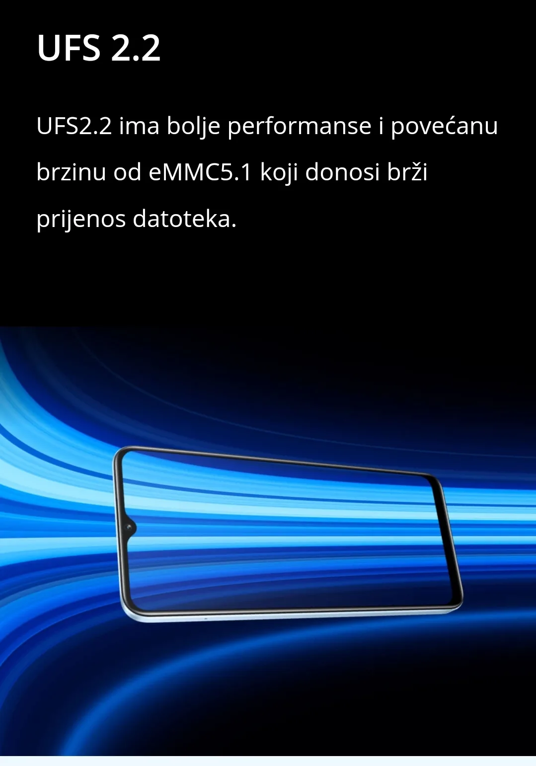 UFS 2.2 – 1000 MB/s, 150 MB/s