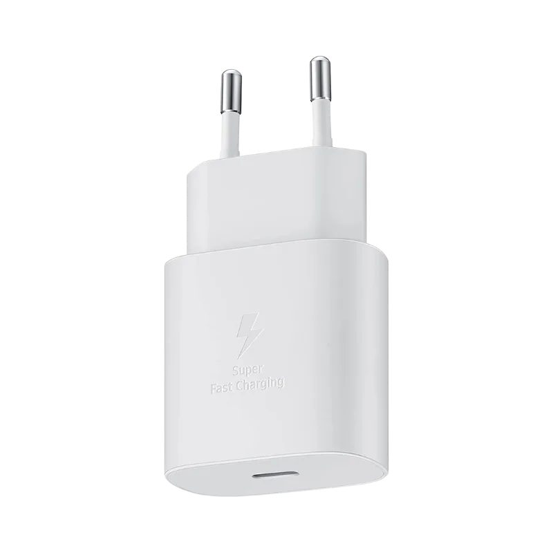 Malo čudo tehnologije. Originalni kućni punjač za Samsung 25W Beli, spreman je da napuni vaš telefon istog časa.