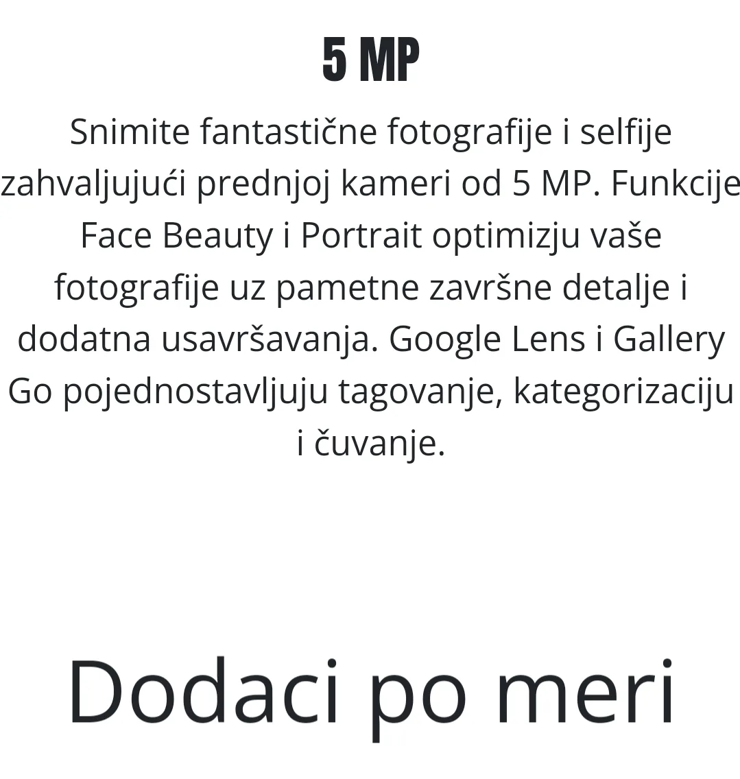 Snimite fantastične fotografije i selfije zahvaljujući prednjoj kameri od 5 MP. Funkcije Face Beauty i Portrait optimizju vaše fotografije uz pametne završne detalje i dodatna usavršavanja. Ukoliko želite da pogledate još neke uređaje po super ceni iz Wiko kolekcije, na pravom ste mestu.
