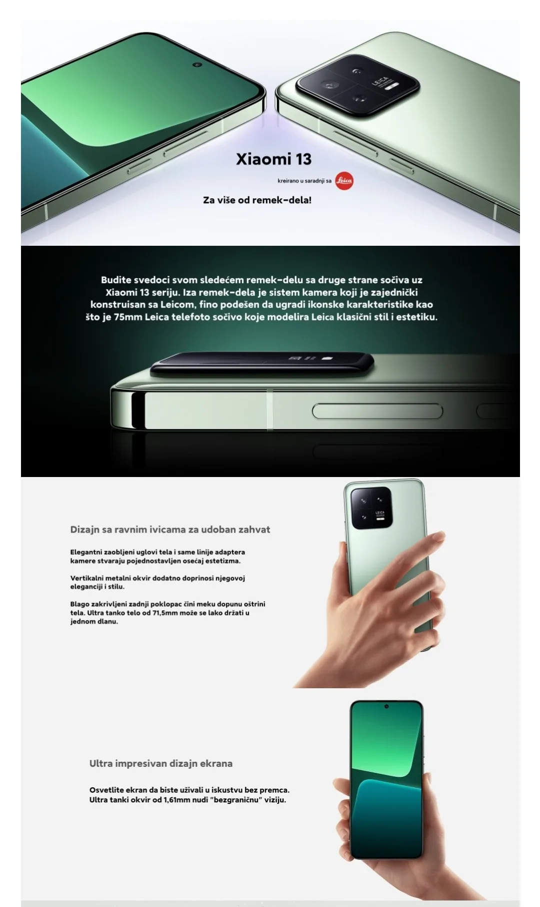 Ukratko, Xiaomi 13 8/256GB Zeleni je pametni telefon koji nudi vrhunski dizajn, visoke performanse i napredne funkcije. Sa svojim impresivnim ekranom, moćnom kamerom i brzim procesorom, ovaj telefon će vas oduševiti u svakodnevnom korištenju.