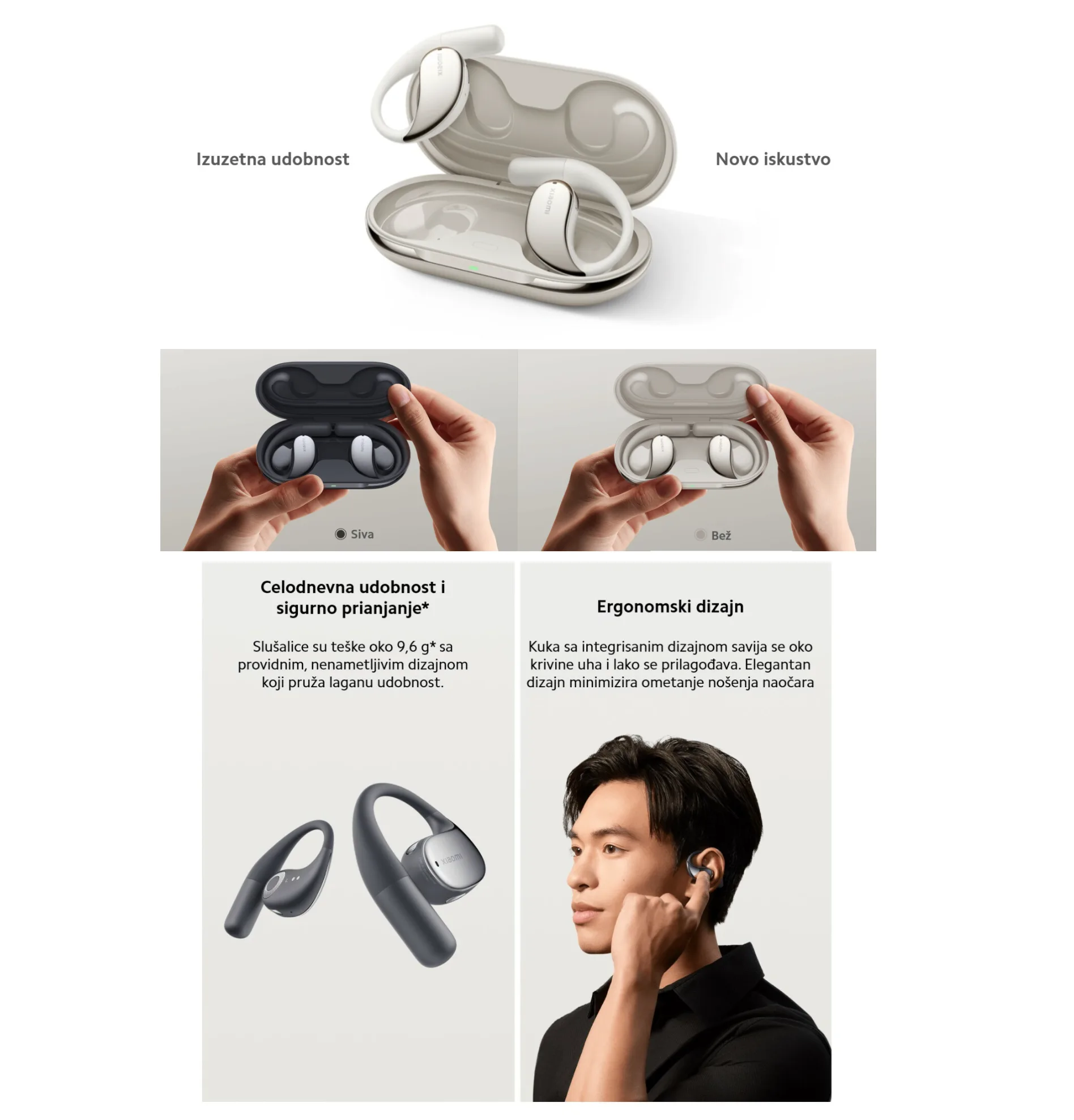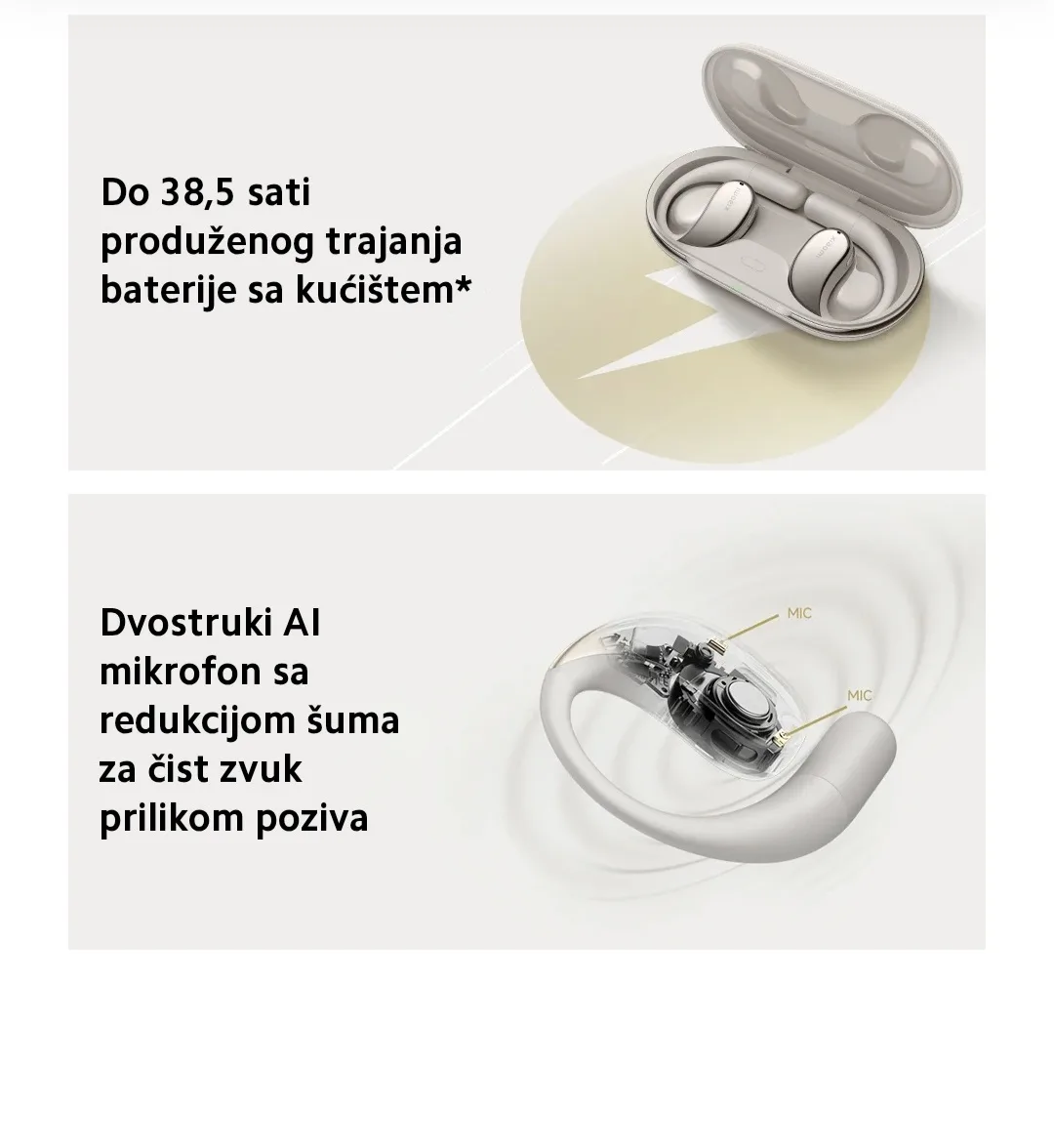 Xiaomi OpenWear Stereo bežične slušalice, Bež