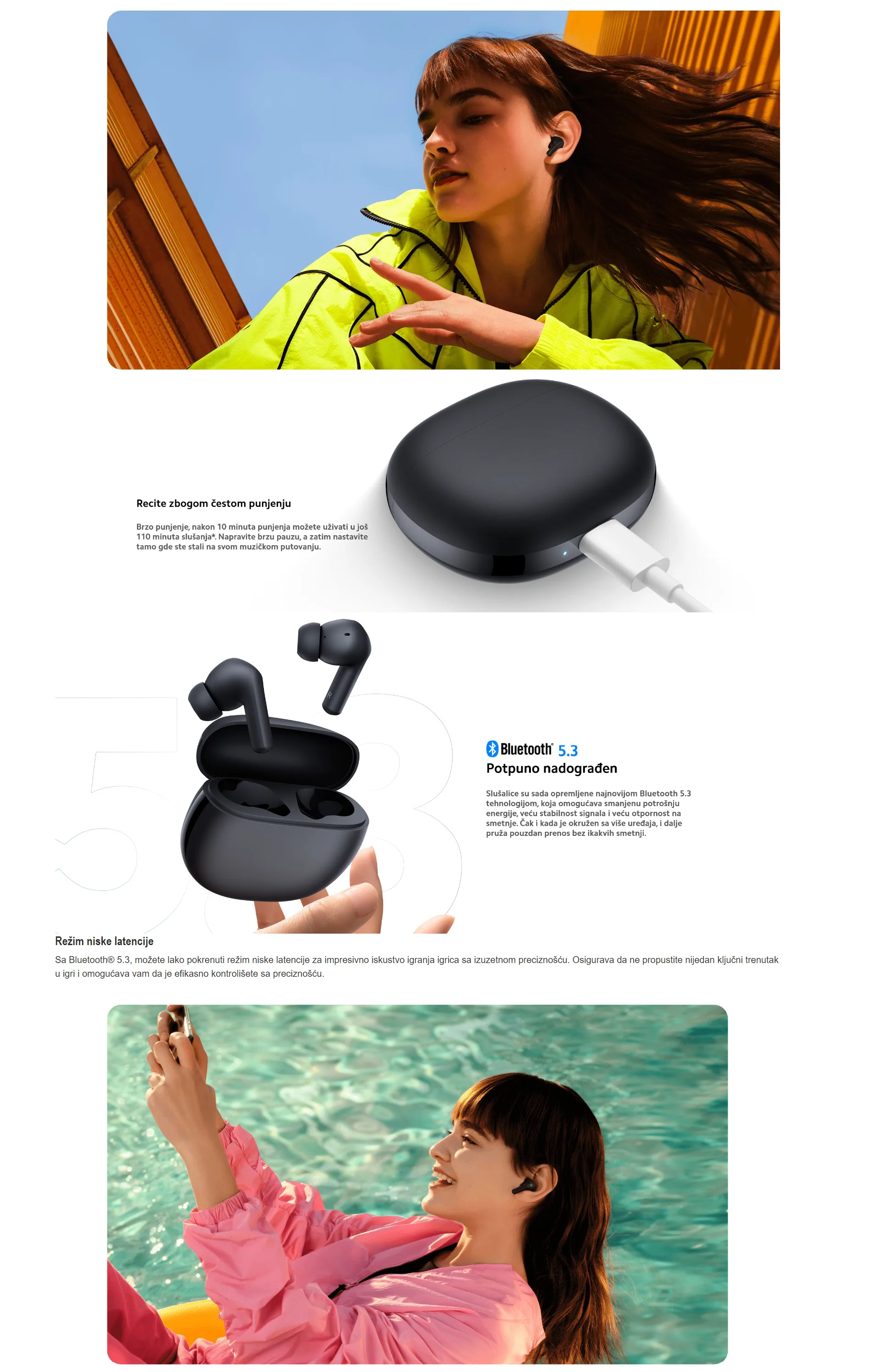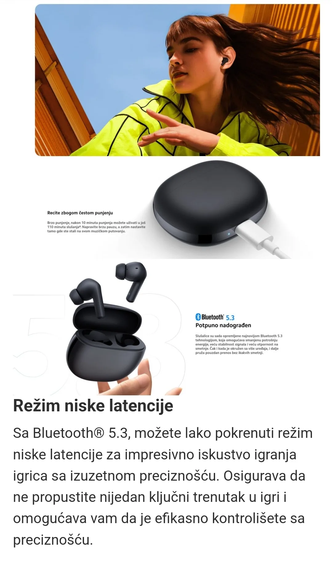 Predstavljamo vam Redmi Buds 4 Active, vrhunske bežične slušalice koje postavljaju nove standarde u svetu mobilne audio opreme. Sa najnovijom Bluetooth 5.3 tehnologijom, ove slušalice pružaju stabilnu i brzu konekciju, savršenu za sve vaše aktivnosti, od trčanja do opuštanja uz omiljenu muziku.