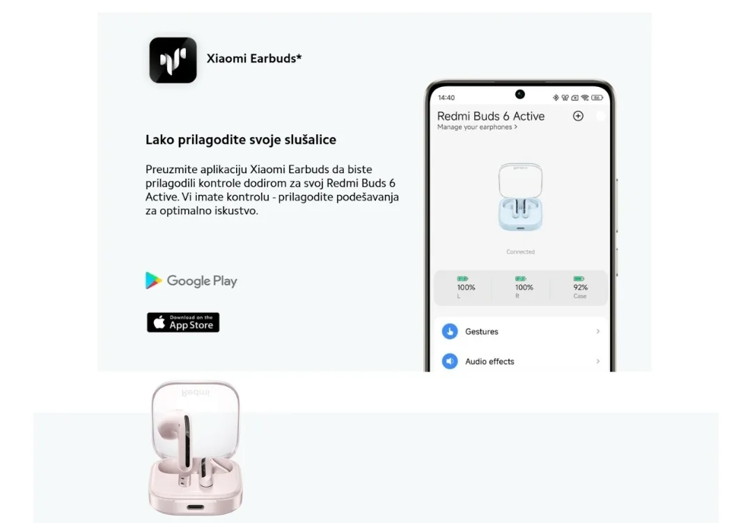 Xiaomi Redmi Buds 6 Active bežične slušalice, Roze