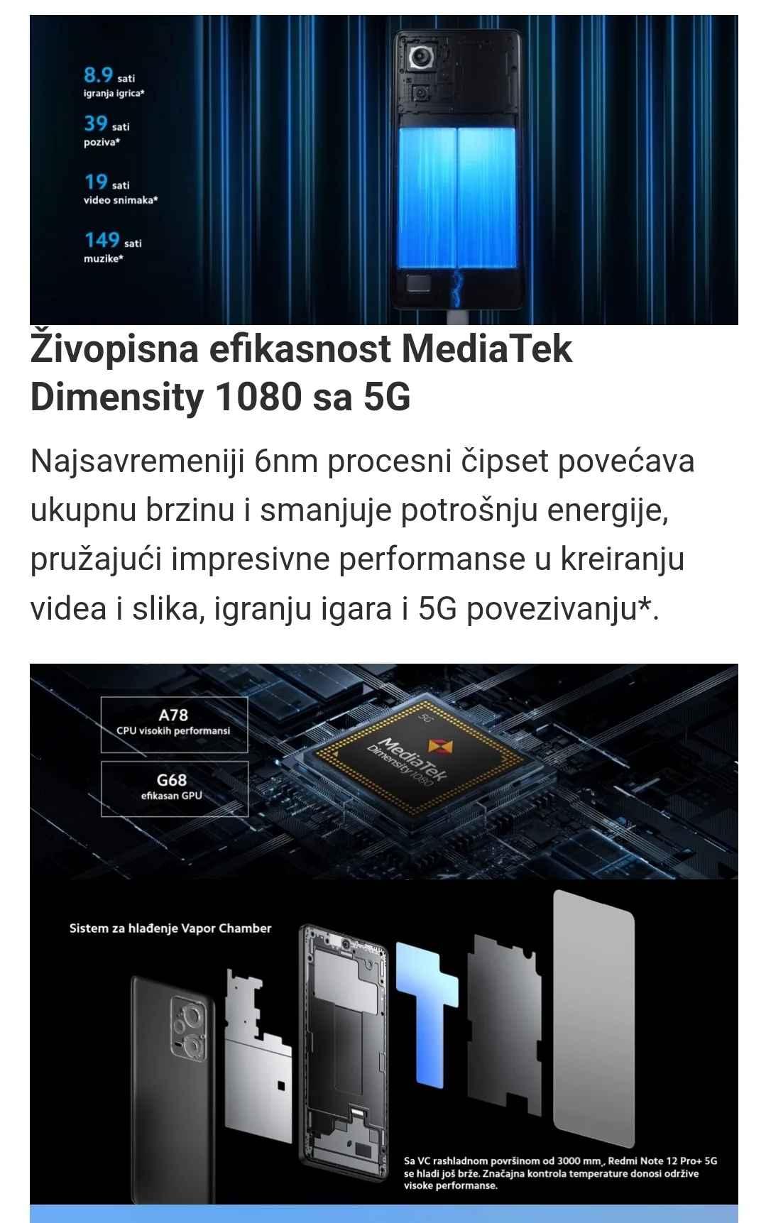 * Trajanje baterije ne zavisi samo od kapaciteta baterije već i od ostatka hardvera odnosno koliko su komponente napredne i samim tim troše manje energije da rade