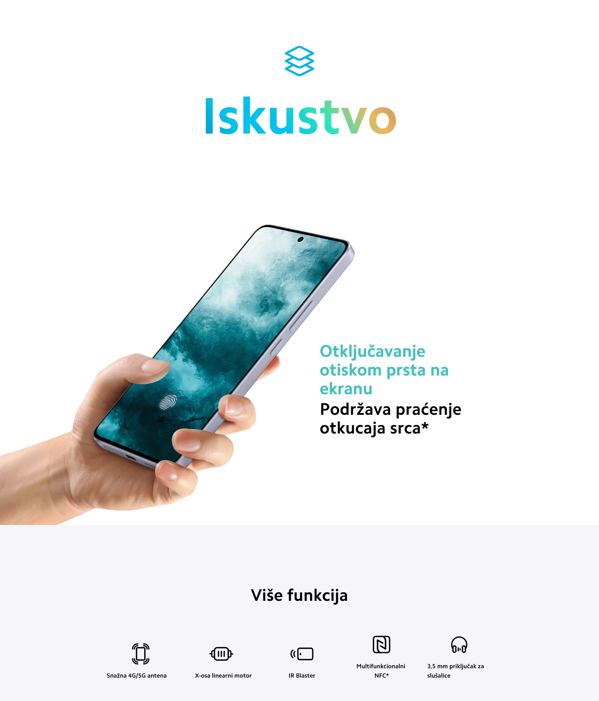 Otključavanje putem otiska prsta (smešten na dnu ekrana)
