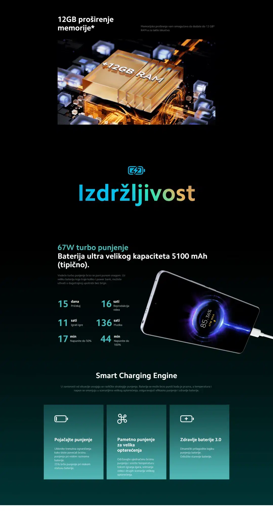 Šarm ovog uređaja ne prestaje samo na dugotrajnoj bateriji. Opremljen je sa izuzetno brzim punjačem od 67W, što znači da kada dođe vreme za punjenje, nećete dugo čekati. Baterija se od minimalnog nivoa do potpune napunjenosti dopunjava za samo malo više od jednog sata, što predstavlja vrhunac efikasnosti. Zaboravite na neprestano traženje slobodnih utičnica ili beskrajno sporo punjenje, jer Redmi Note 13 Pro 5G donosi brzinu i efikasnost u svaki trenutak vašeg dana.