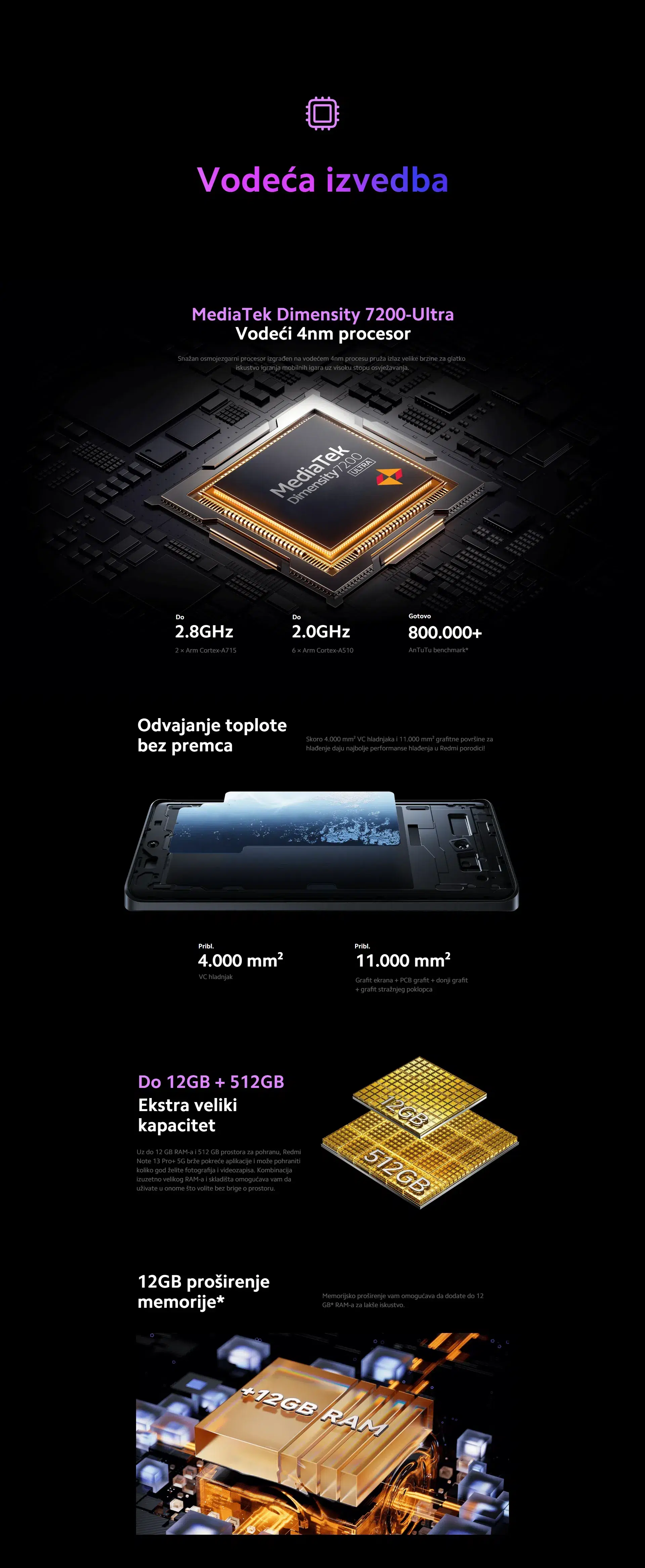 Xiaomi Redmi Note 13 Pro+ 5G 12/512GB, Crni (Midnight Black)