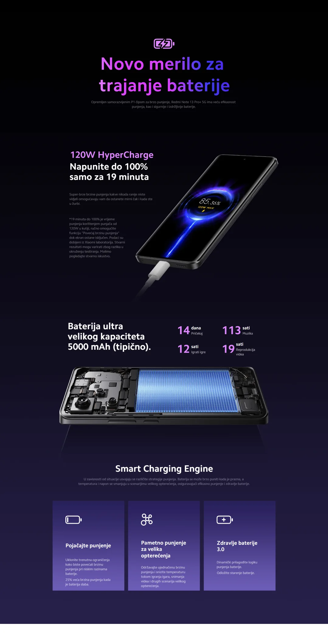 * Trajanje baterije ne zavisi samo od kapaciteta baterije već i od ostatka hardvera odnosno koliko su komponente napredne i samim tim troše manje energije da rade