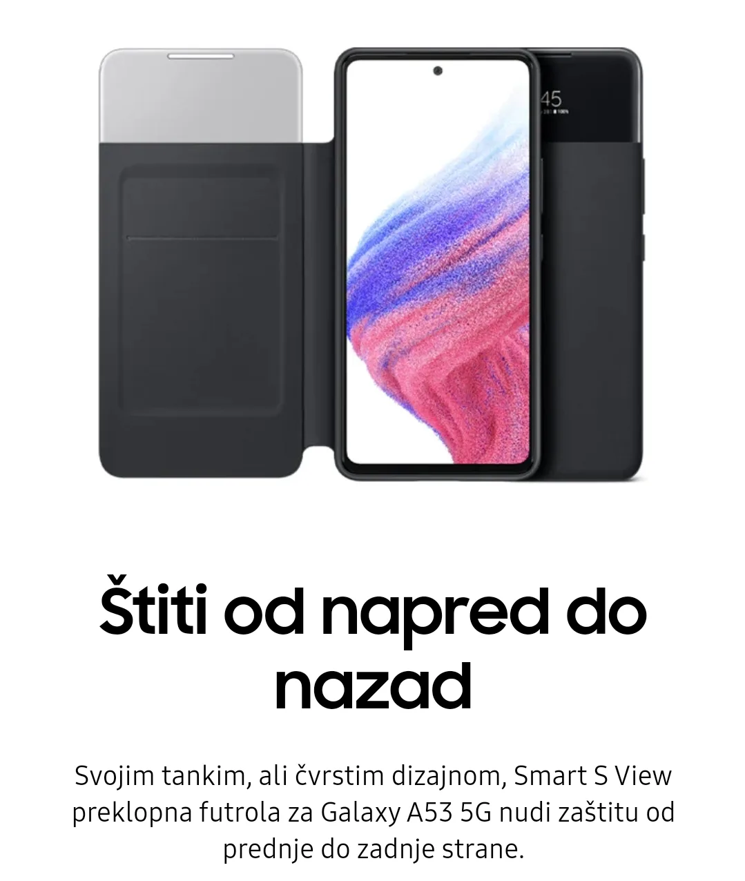Ako želite da koristite telefon a da pritom imate futrolu na kojoj sve radi Galaxy A53 Smart View preklopna futrola Crna je pravi izbor.